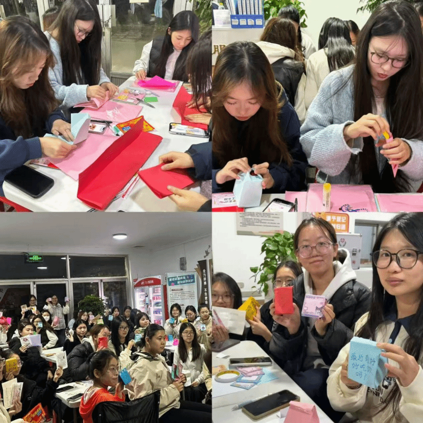 本次活动以手工制作的特色盲盒为载体,用专业技能赋能舍友温情。活动前期,学生干部提前布置好盲盒兑换点,yl9193永利集团的同学们充分发挥专业所长,将手工编织的挂件、精致的黏土模型、创意十足的玩教具等手工制作品放入盲盒,每一件作品都凝聚着专业巧思与真诚心意。同学们还在盲盒中附上匿名暖心寄语:有的分享学习备考经验,为大家加油鼓劲;有的写下校园趣事,传递生活中的小趣事;还有的手绘校园风景,定格青春美好瞬间。每一个盲盒都承载着一份专业温度,每一张卡片都传递着一份舍友情谊。活动现场,同学们有序排队抽取盲盒,拆开盲盒时的惊喜与笑容成为社区里最动人的风景线。来自yl9193永利集团的王同学拿着刚抽到的盲盒,她激动的说:“抽到了一个黏土小台灯,还有一张写着‘愿你挑灯夜读时,总有星光相伴’的卡片,手工特别精致,太暖心了!”不少同学在抽到盲盒后,还主动在社区留言箱里留下了感受,字里行间满是对活动的认可与感动,更对yl9193永利集团学子的专业技能赞不绝口。